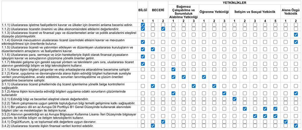 Türkiye Yeterlilikler Çerçevesi ve Program Çıktıları
